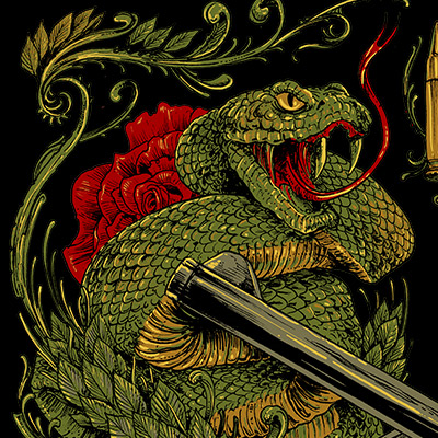 "Snakes and Roses" T-shirt Design featuring snakes, colts and some roses. Design available in PSD format and can be used for digital printing and screen printing. The file will be available for , Adobe Photoshop.