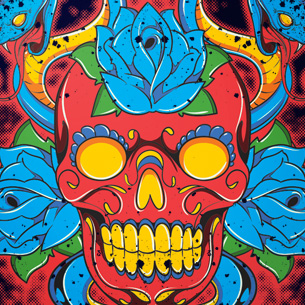 Flowered death mask on a snake background