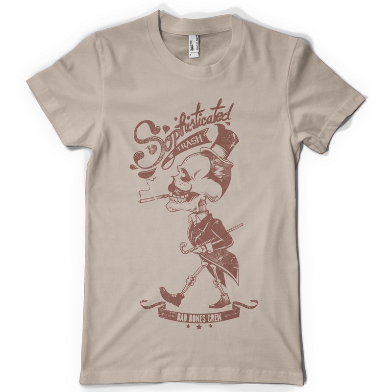 Sophisticated Trash printed t-shirt features a detailed screen print of funny gentleman skull now available for Adobe Illustrator, Adobe Photoshop and Corel Draw and can be used for digital printing and screenprinting . Ready to print or use in anything you want.