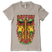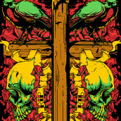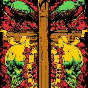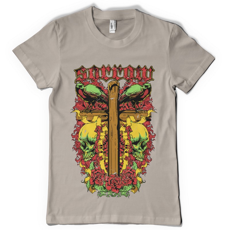 Sorrow cross graphic design template in vector format, featuring detailed cross of wood and skulls now available for Adobe Illustrator, Adobe Photoshop and Corel Draw and can be used for digital printing and screenprinting .