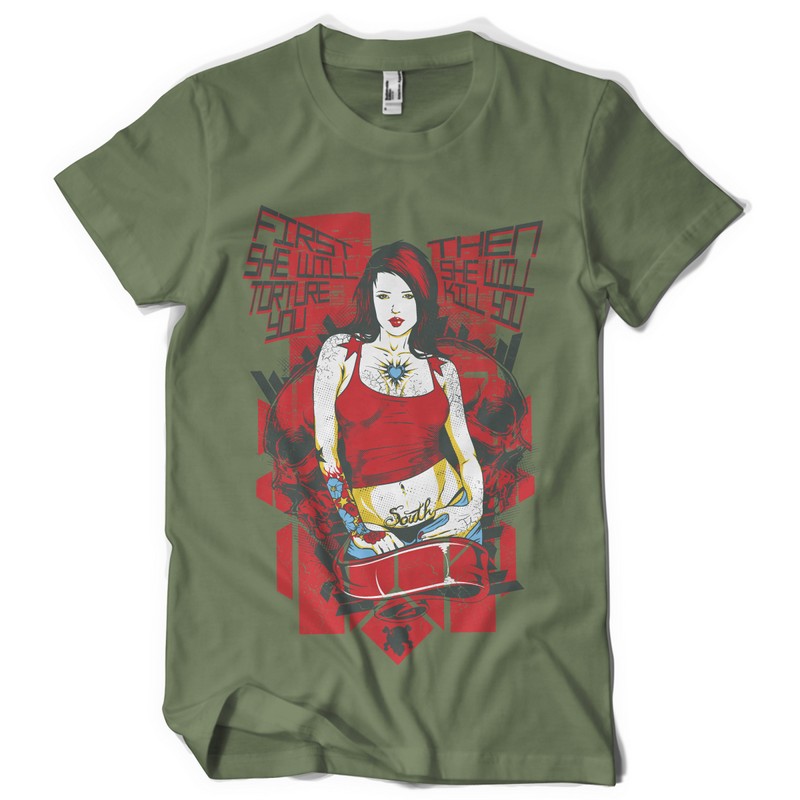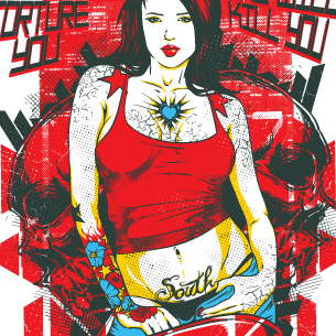 Southern love graphic design template in vector format, featuring detailed sexy tattoed girl now available for Adobe Illustrator, Adobe Photoshop and Corel Draw and can be used for digital printing and screenprinting .