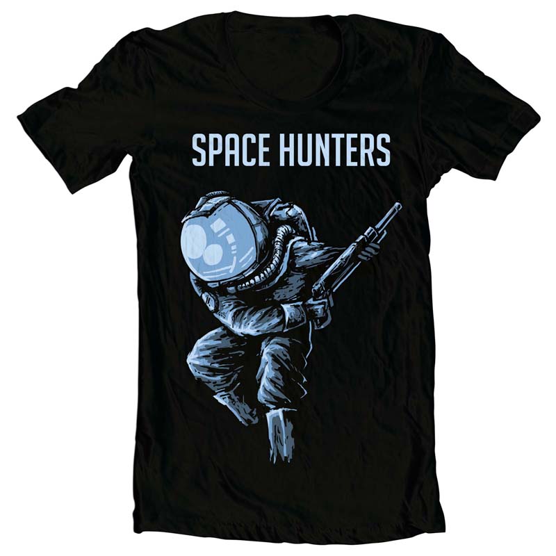 "Space Hunters" T-shirt this great quality artwork design Template with Adobe Photoshop, the file is PSD separated Layers and Png transparent. Can be used for digital printing and screen printing