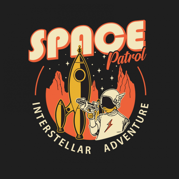 This design “ Space Patrol ” is made in Adobe Ilustrator is ready for print.