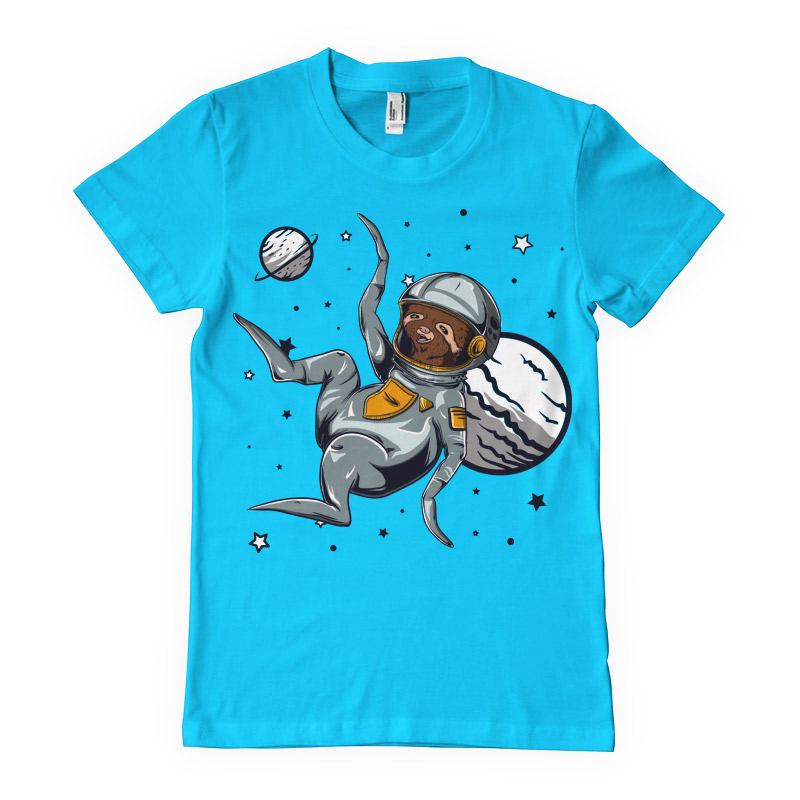 Space sloth t-shirt design. Digital illustration with astro sloth in the space. The colors can be changed. The source file is available in AI, EPS, PNG, PSD and SVG format.