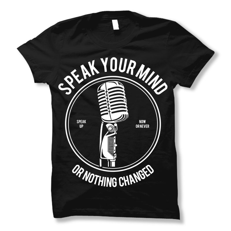 Speak Your Mind Tshirt Design Template based on vector files , such as AI and CDR also with PSD separated Layers file, the design has 1 color print, it can be used for digital printing and screen printing