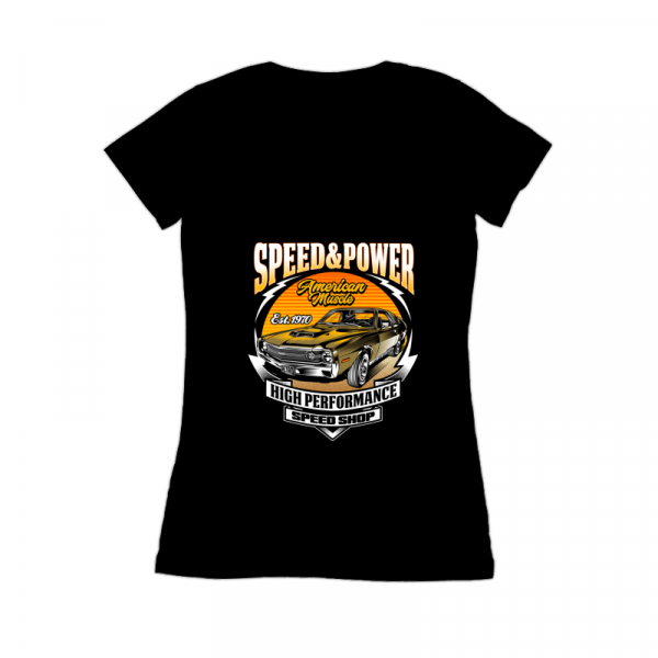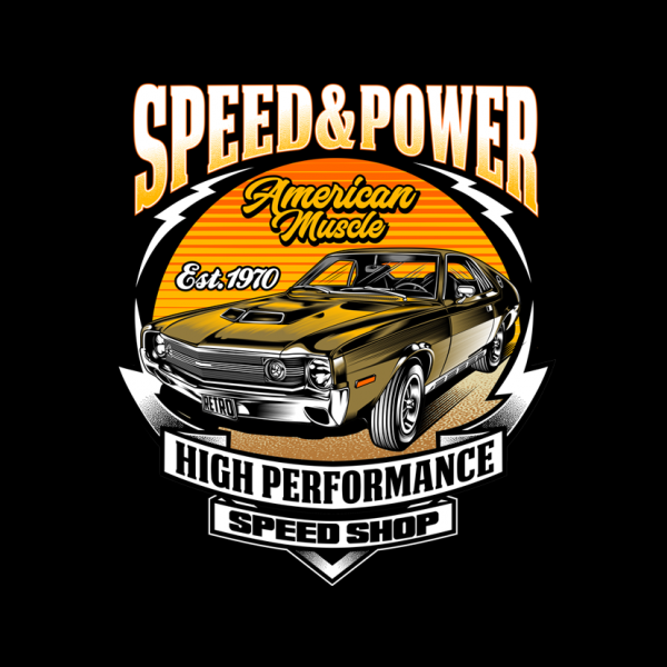 SPEED & POWER AMERICAN MUSCLE CAR ILLUSTRATION T-Shirt was created with Corel Draw and Adobe illustrator, five color print, CDR,AI,PNG,EPS Can be used for digital printing and screen printing