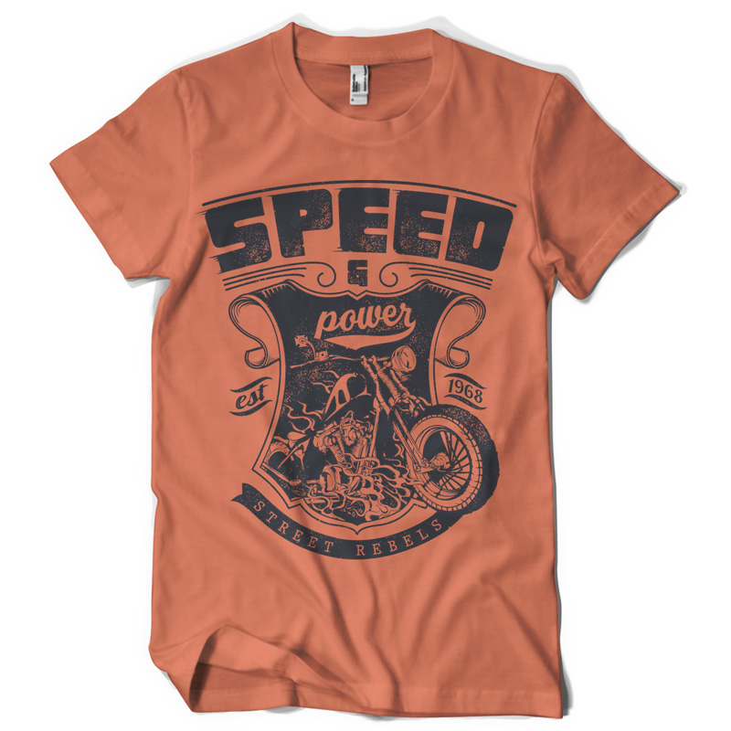Speed and Power digital design template in vector format, featuring detailed retro motorcycle now available for Adobe Illustrator, Adobe Photoshop and Corel Draw and can be used for digital printing and screenprinting .