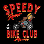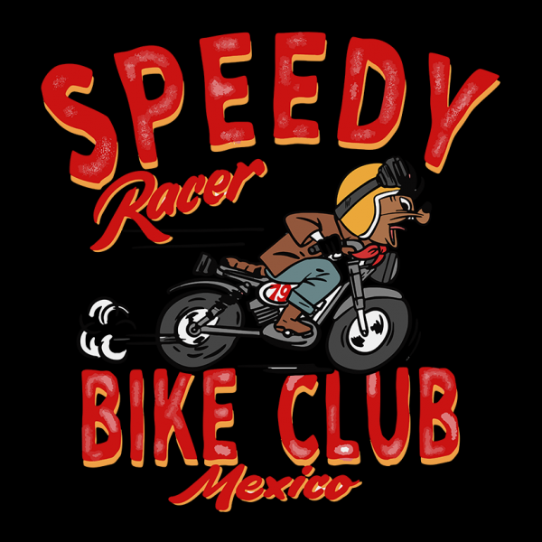 This design “ speedy racer ” is made in Adobe Ilustrator is ready for print.