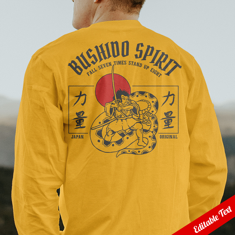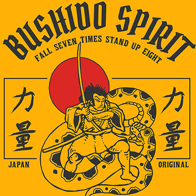 Vector illustration of samurai bushido spirit with snake and sword. Ready to print on t-shirt.