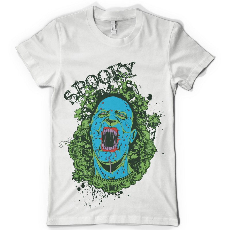 Spooky T-shirt design template in vector format, featuring detailed spooky human screaming now available for Adobe Illustrator, Adobe Photoshop and Corel Draw and can be used for digital printing and screenprinting .