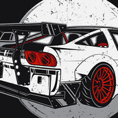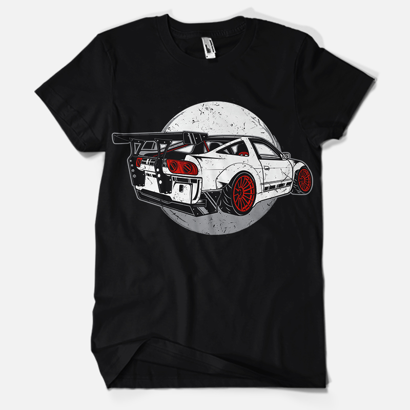 "SPORT CAR" HighT-shirt design use 4 color on black tee
