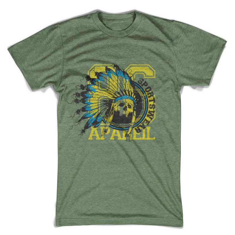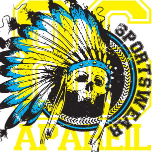 Sportswear graphic design template in vector format, featuring detailed indian skull now available for Adobe Illustrator, Adobe Photoshop and Corel Draw and can be used for digital printing and screenprinting .