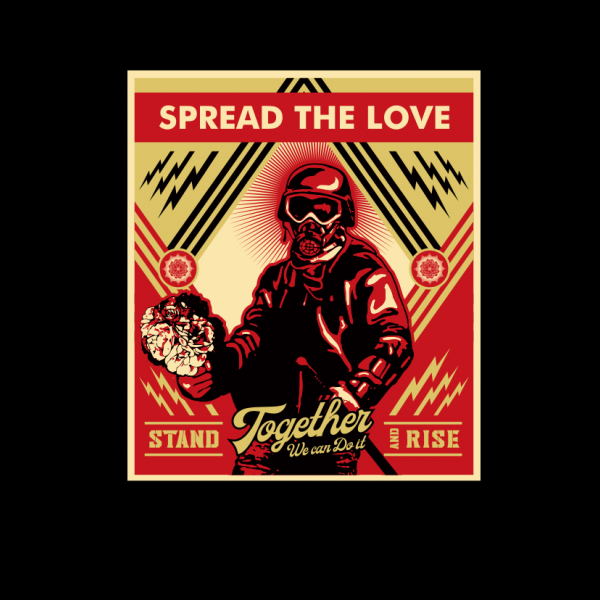 This design “spread the love” is made in Adobe Ilustrator is ready for print.