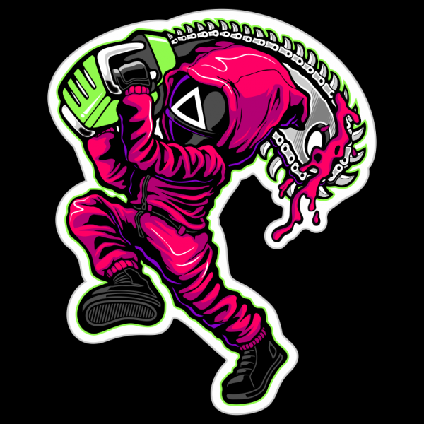 “Squid Game Cartoon ” Cartoon style. such as Ai, EPS, CDR, PDF, PDS, SVG, and PNG Transparent. the design has 7 colors. print it can be used for digital printing and screen printing
