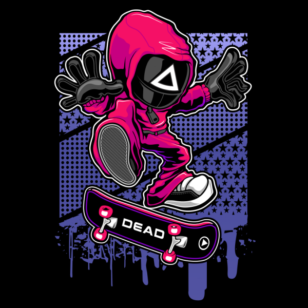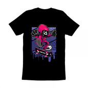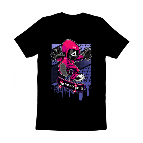 “Squid Game Cartoon ” Cartoon style. such as Ai,EPS,CDR, PDF, PDS, SVG, and PNG Transparent. the design has 6 colors on black T-shirt. print it can be used for digital printing and screen printing