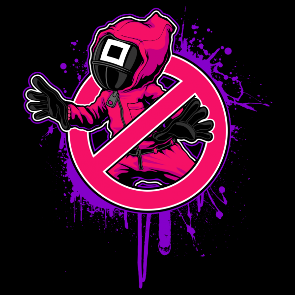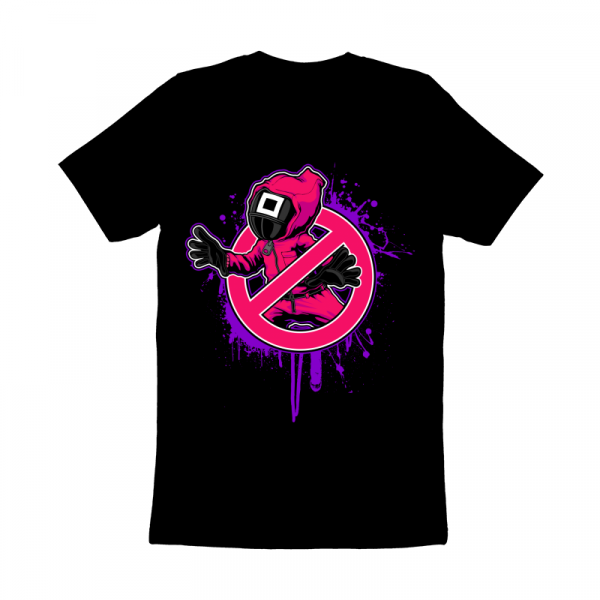 “Squid game parody ” Cartoon style. such as Ai,EPS,CDR, PDF, PDS, SVG, and PNG Transparent. the design has 6 colors on black T-shirt. print it can be used for digital printing and screen printing