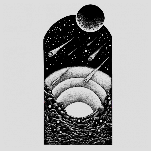 Starmoon artwork with cross hatching and pointillism style available in PSD and PNG 300dpi high resolution files.