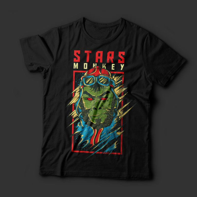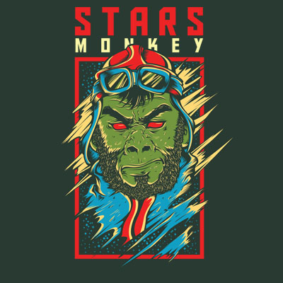 Stars Monkey with Urban streetart style. Cool vector design that looks fun and nice. Based on vector file, easy to resize and edit. File features AI, EPS, and PNG all in zip, CMYK color mode and 5 colors print.