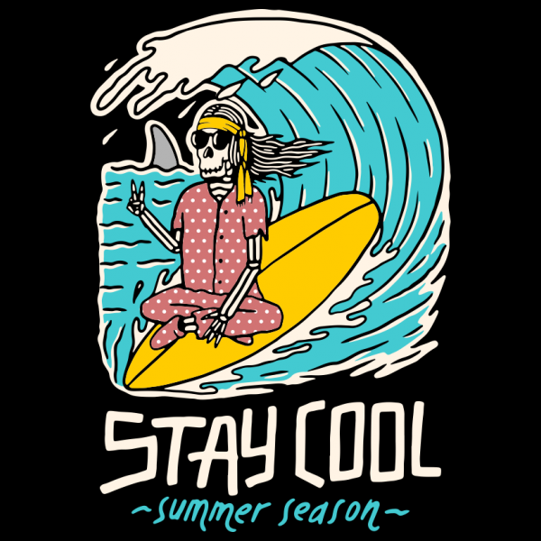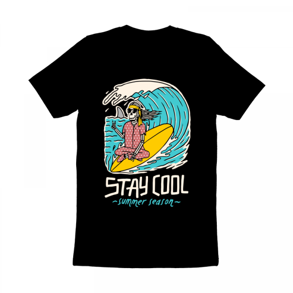 "stay cool" T-shirt design featuring typography style illustration, with distressed details. The files available are suitable for corel draw, adobe illustrator and png (high resolution) and can be used for digital printing and screenprinting.