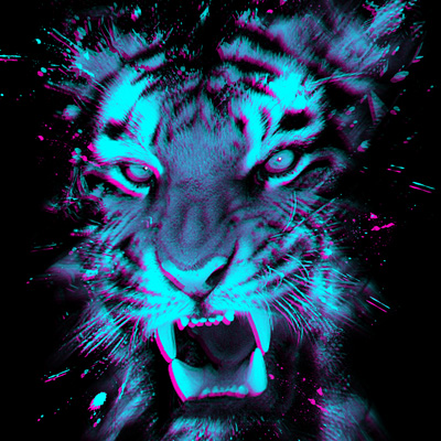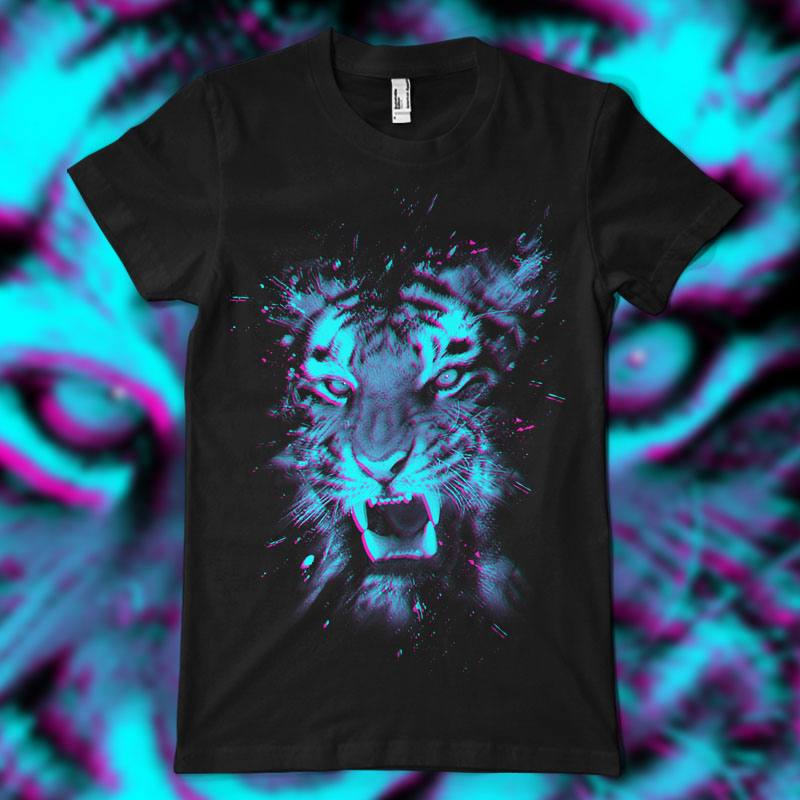 "Stealth Mode" is a unique illustration of a tiger with a unique 2d effect using neon colors of teal and hot pink which makes this design stand out on tees and other products. File contains a PSD file with 17 x 24 in size.