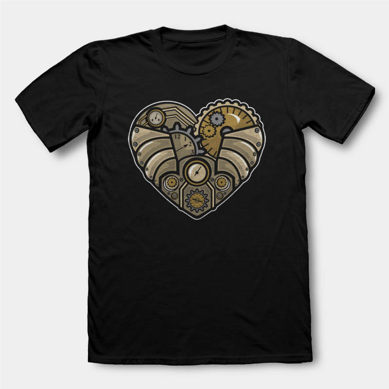 Steampunk Heart classic style T-shirt design template , The files are AI, CDR, PSD separated Layers. Can be used for digital printing and screen printing.