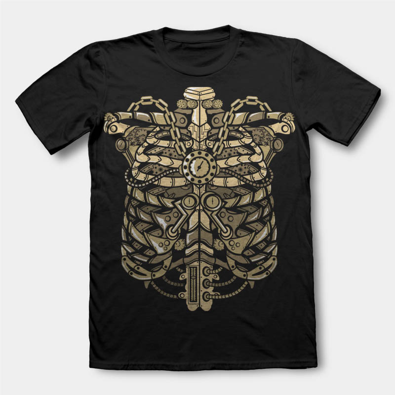 Steampunk Ribcage Cartoon style T-shirt design template , The files are AI, CDR, PSD separated Layers. Can be used for digital printing and screen printing.