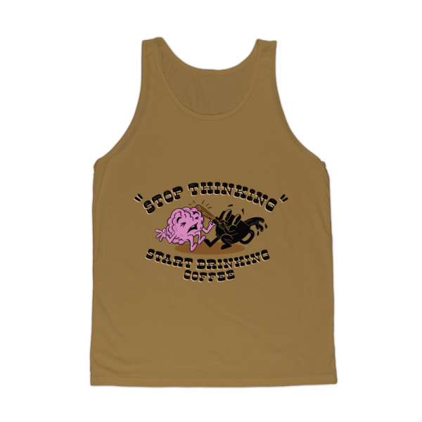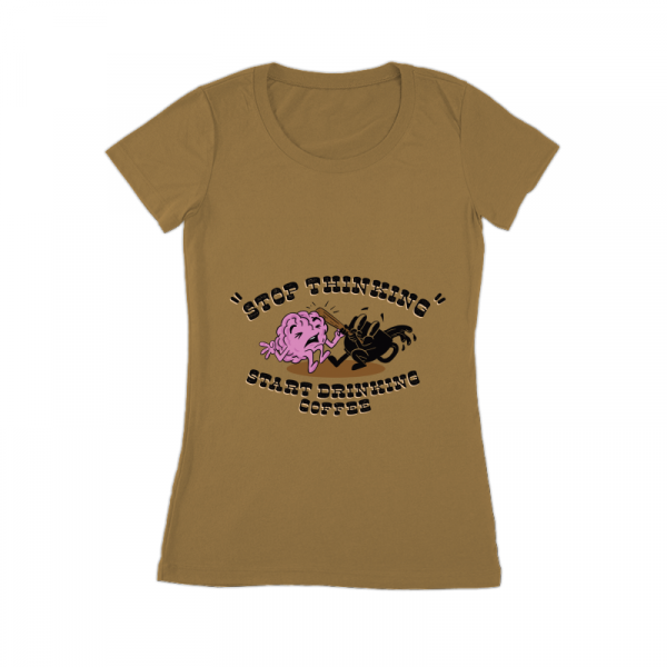 This design “ stop thinking ” is made in Adobe Ilustrator is ready for print.