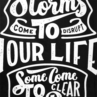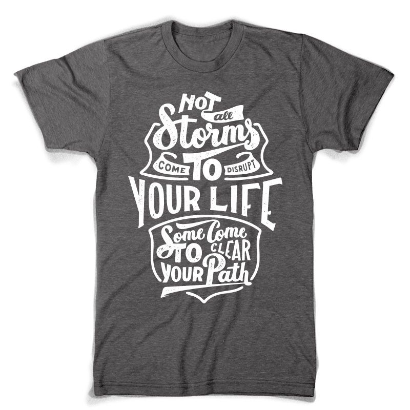 "Storms" T-shirt design featuring typography style quote, with distressed details. The files available are suitable for Adobe Illustrator and Adobe Photoshop and can be used for digital printing and screenprinting.