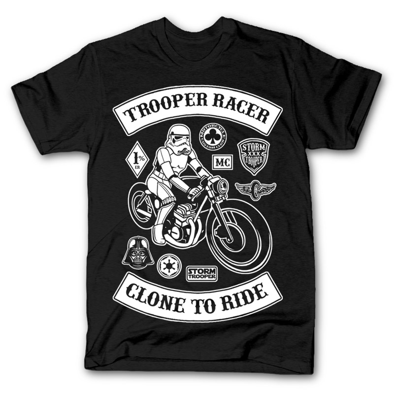 Stormtrooper with Caferacer style character T-shirt design template with Adobe Photoshop, the file is PSD separated Layers. Can be used for digital printing and screen printing.