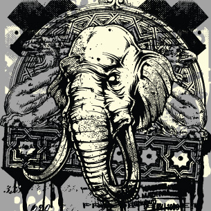 Strength graphic design template in vector format, featuring detailed wild elephant now available for Adobe Illustrator, Adobe Photoshop and Corel Draw and can be used for digital printing and screenprinting .