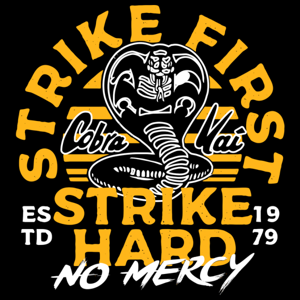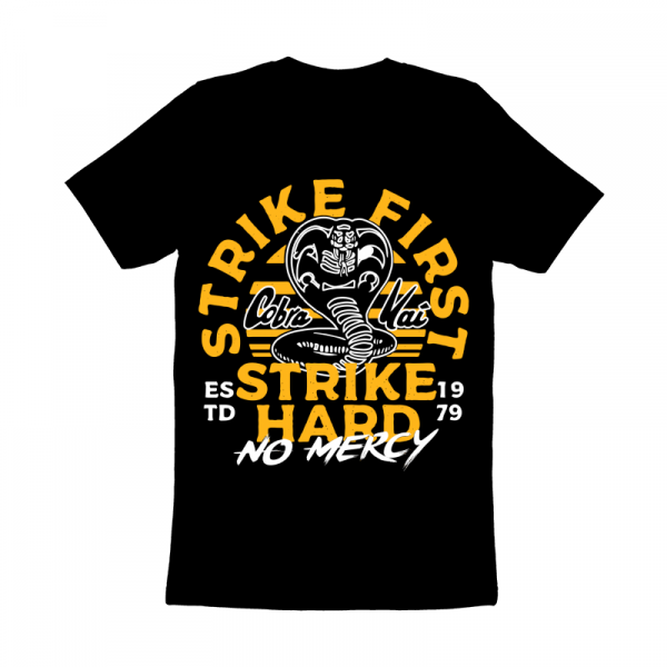 This design “ strike first strike hard ” is made in Adobe Ilustrator is ready for print.