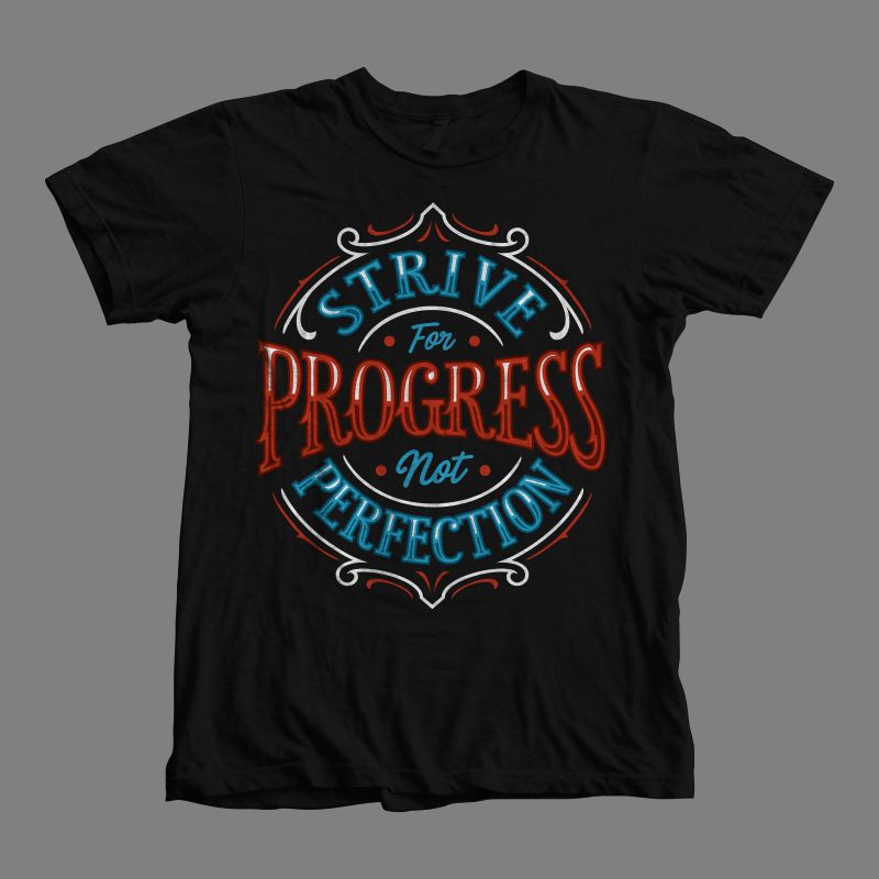 "Strive For Progress Not Perfection" Typography style t-shirt design.