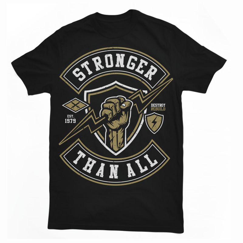 Stronger Than All T-shirt design template with 2 colour print, CDR,AI and PSD with separated layers. Can be used for digital printing and screen printing.