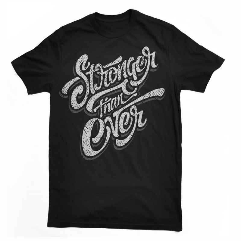 Stronger than Ever Typography Design created with adobe photoshop .2 colour print, CDR, AI and PSD File separated Layers. Can be used for digital printing and screen printing.