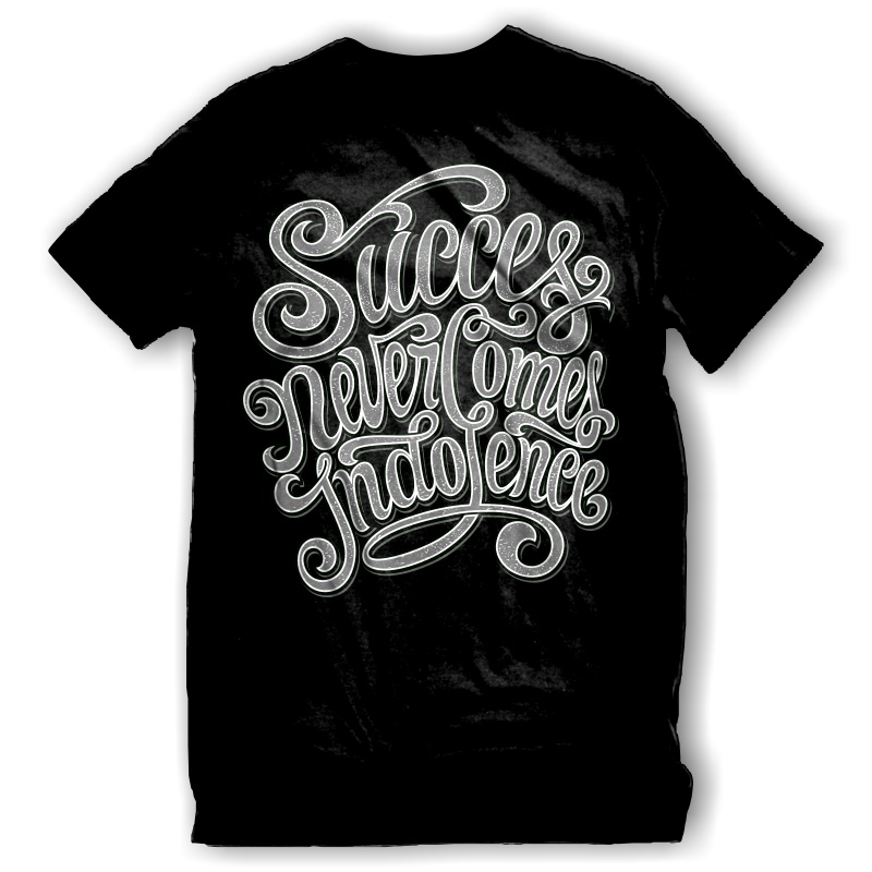 " Succes never comes indolences " typography style. This design use 3 colourson Black t-shirt. it is high quality vector format, easy for editing process, available for Adobe Illustrator, and Corel Draw and can be used for digital printing and screenprinting.
