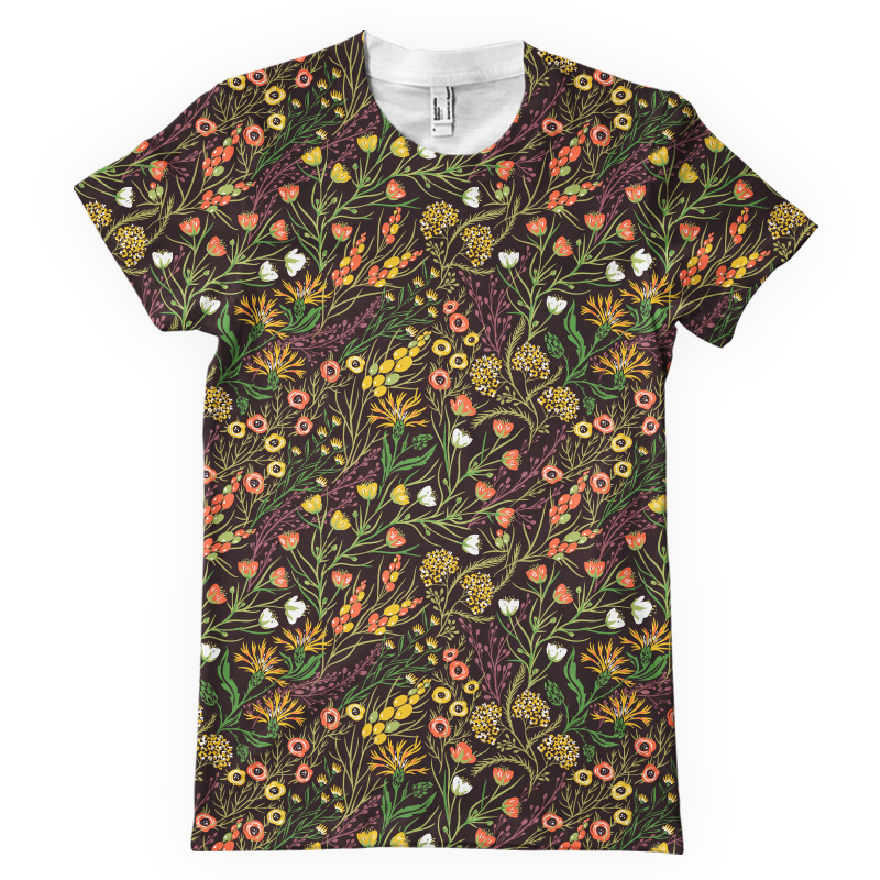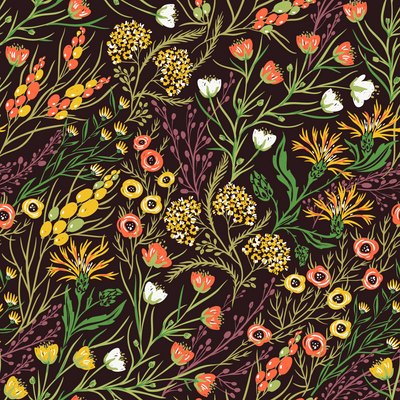 Vector floral seamless pattern with blooming flowers, plants and herbs.This image is a vector illustration and can be scaled to any size without loss of resolution.This image will download as a .eps file.