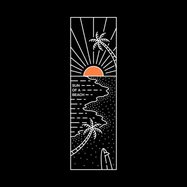 Sun of a Beach is a monoline illustration that is suitable for apparel or merchandise about summer, vacation, holiday, beach, surfing, surfboard, waves, surfer, sport, travel, sea, tropical, good vibes, surf, hawaii.