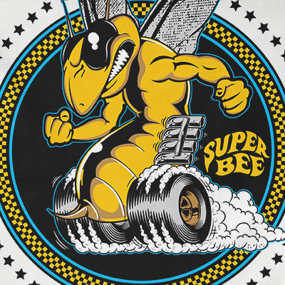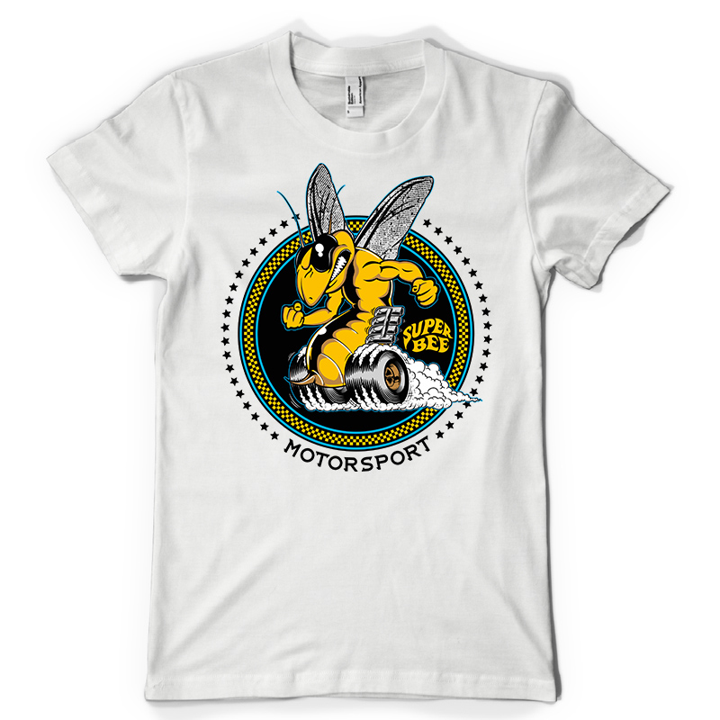 Super Bee design features a bee speed cars shield detailed screen print now available for Adobe Illustrator, and Corel Draw and can be used for digital printing and screenprinting.