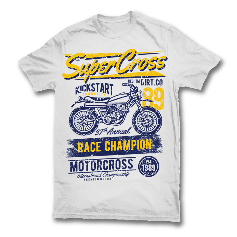 Super Cross Tshirt Design Template based on vector files , such as AI and CDR also with PSD separated Layers file, the design has 2 color print, it can be used for digital printing and screen printing.