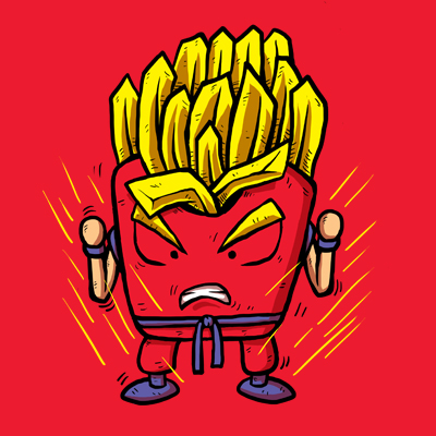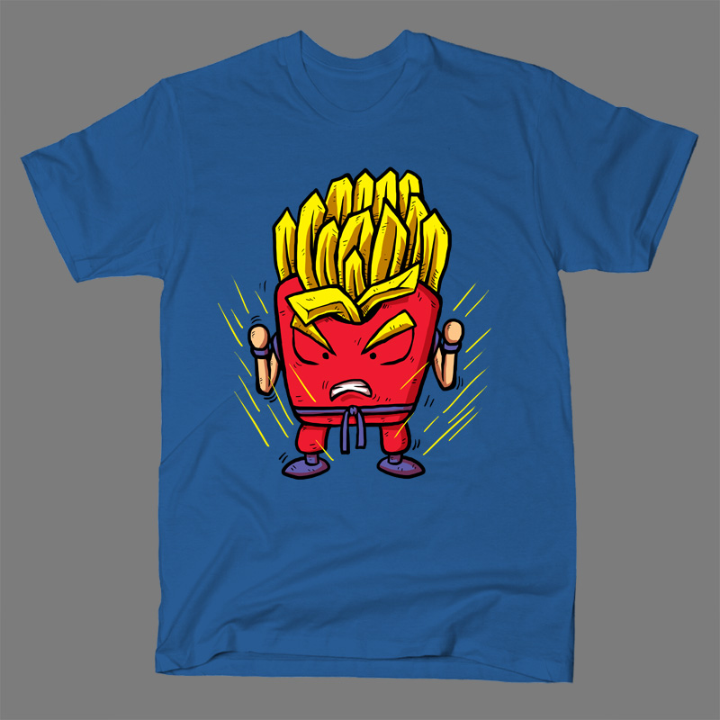 Parody of Goku super saiyan and mc donald's frencefries. design is in adobe photoshop with color separate layer. good for DTG print. work for red and blur tshirt color.