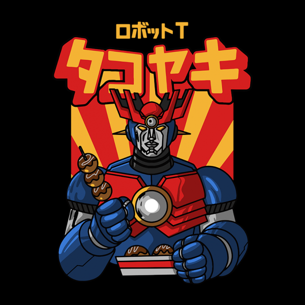 This design “ super robot tako ” is made in Adobe Ilustrator is ready for print.