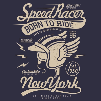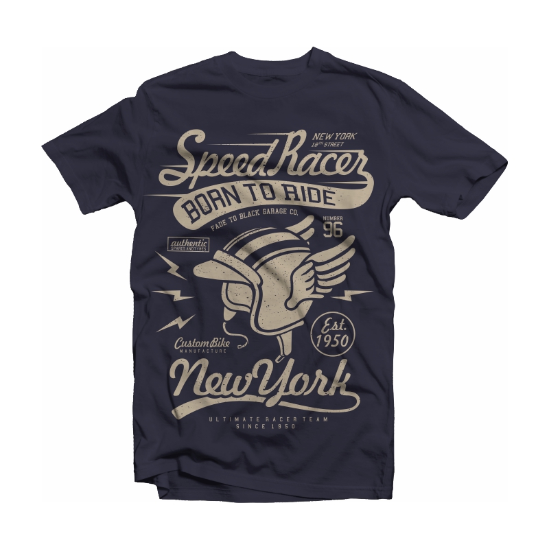 Speed Racer T-shirt design template with CorelDraw or Adobe Illustrator. 1 colour print, CDR,AI,PSD separated Layers. Can be used for digital printing and screen printing.