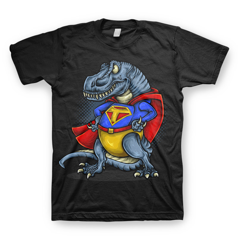 Super T-Rex , a tshirt design character, available in AI,EPS (adobe illustrator), PSD(adobe photoshop),CDR(CorelDraw) and PNG. Fit for digital and screen printing.