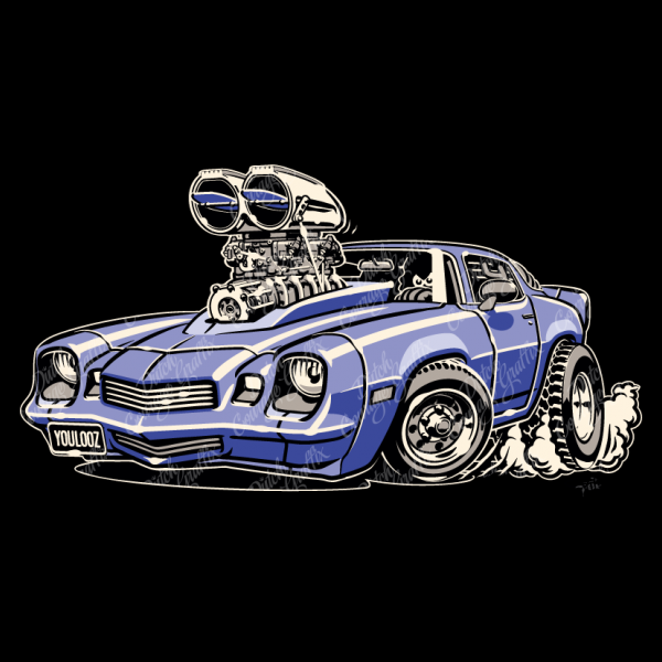 Supercharged Shark Nose Camaro Z28 Muscle Car-Toon