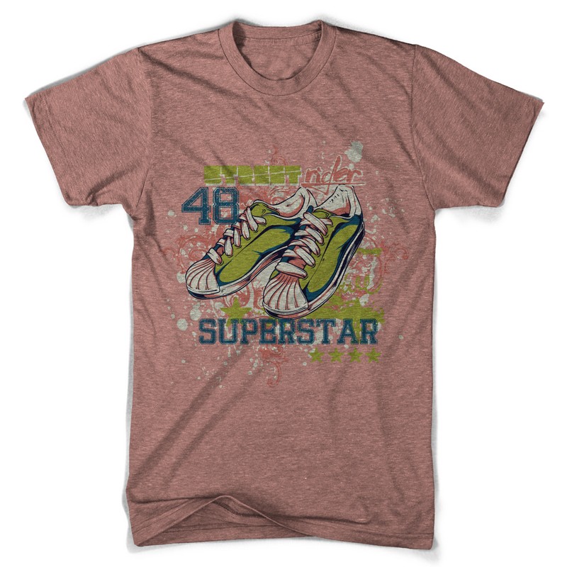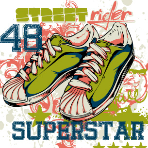 Superstars design template in vector format, featuring detailed baskets shoes now available for Adobe Illustrator, Adobe Photoshop and Corel Draw and can be used for digital printing and screenprinting .