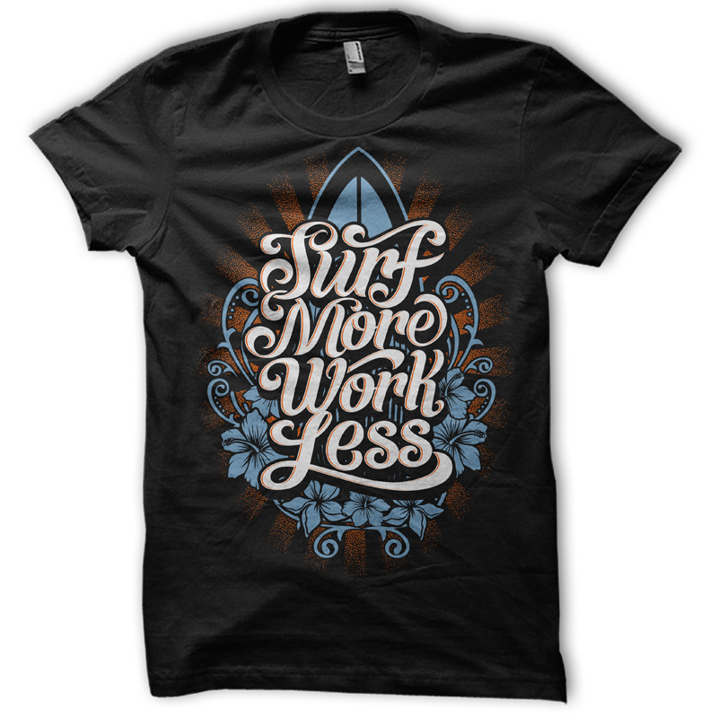 "Surf More Work Less T-shirt Design" design created with corel X6 and adobe Illustrator three color design can be used for digital printing and screen printing. Enjoy!