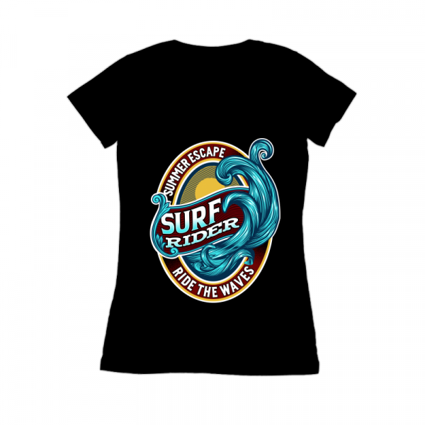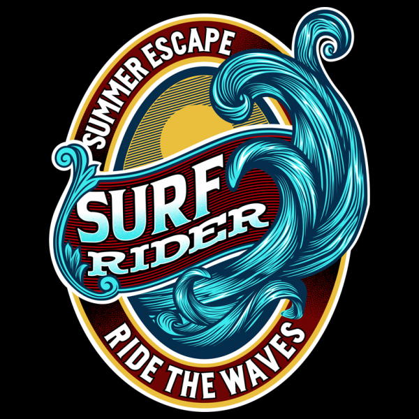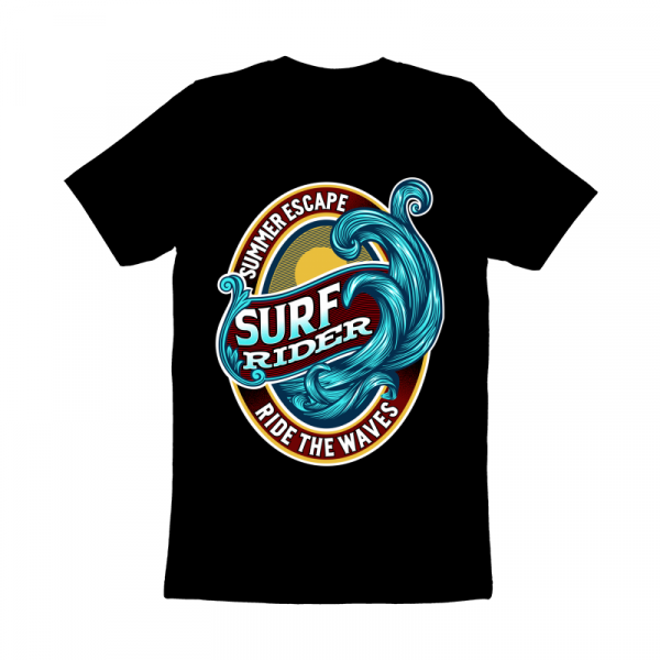 "Surf Rider Ride The Waves” T-Shirt was created with Corel Draw and Adobe illustrator, four color print, CDR,AI,PNG,EPS Can be used for digital printing and screen printing