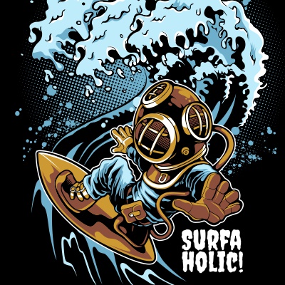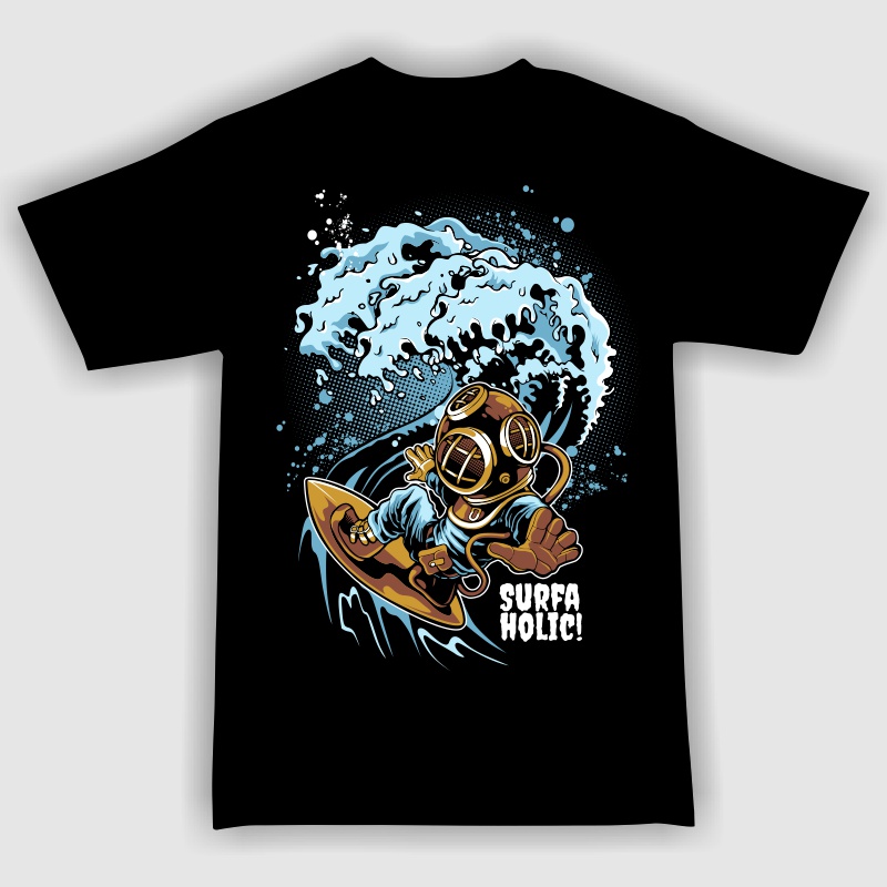 "Surfaholic"character style T-shirt design.The files available are suitable for Adobe Illustrator, Adobe Photoshop and Corel Draw and can be used for digital printing and screen printing.