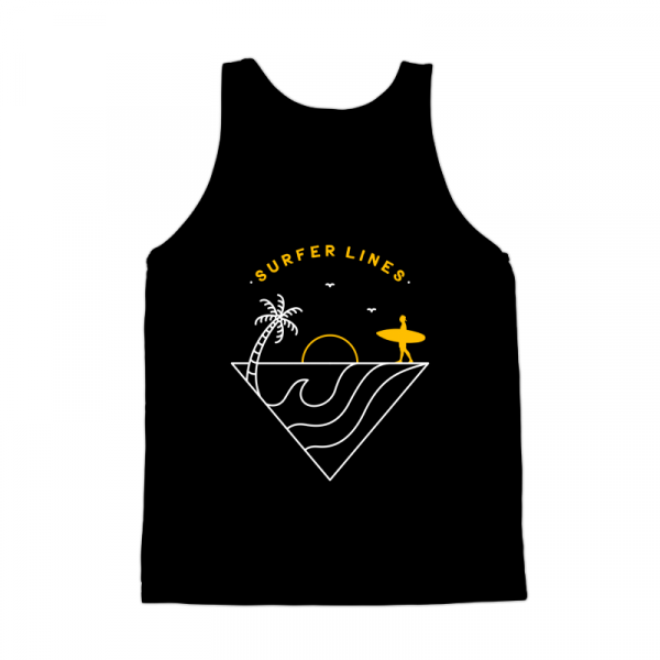 Surfer Lines is a monoline illustration that is suitable for apparel or merchandise about summer, vacation, holiday, travel, beach, sea, ocean, waves, surfing, tropical, surfer, surfboard, sunset, nature, sport.