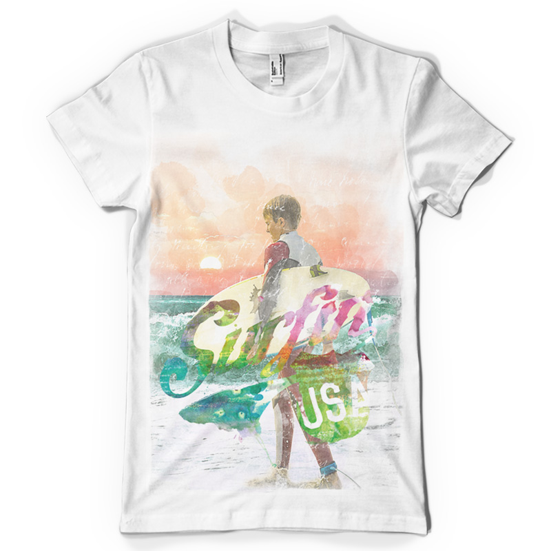 "Surfin USA 2" Artwork created in Adobe Photoshop. The file available for the client upon purchase and download is in TIFF format designed for DIRECT TO GARMENT printing.